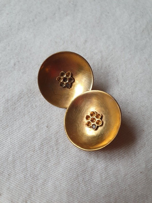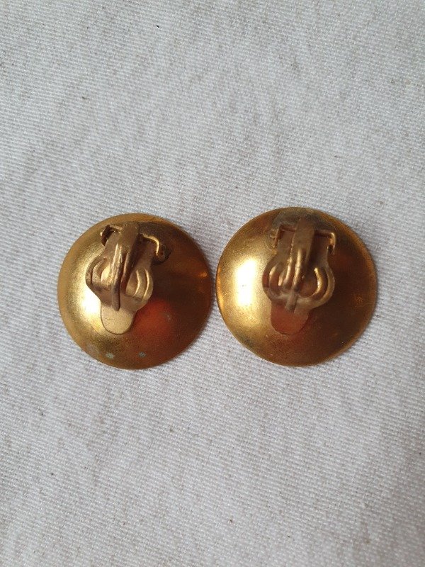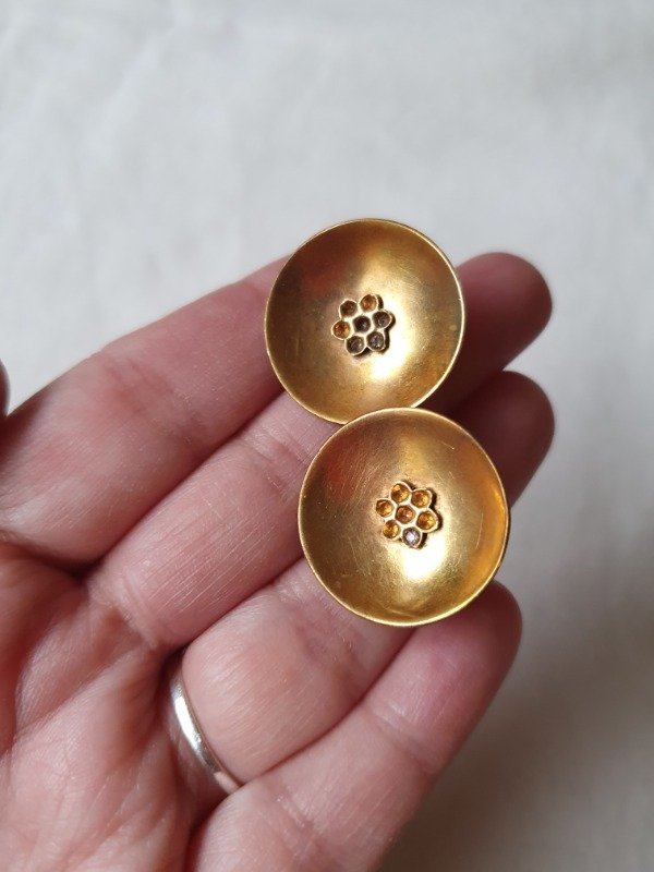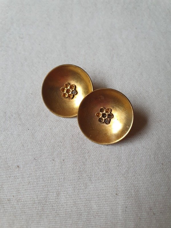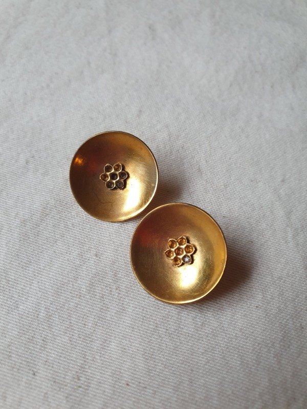 Aros clips 40s de círculos con curvatura y pequeñas florecitas en bronce