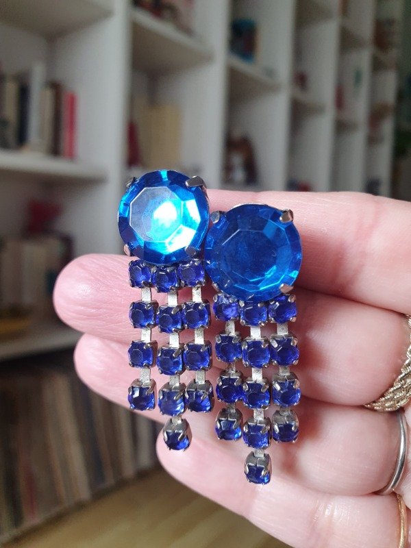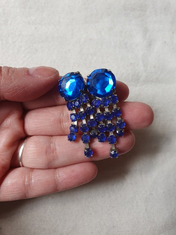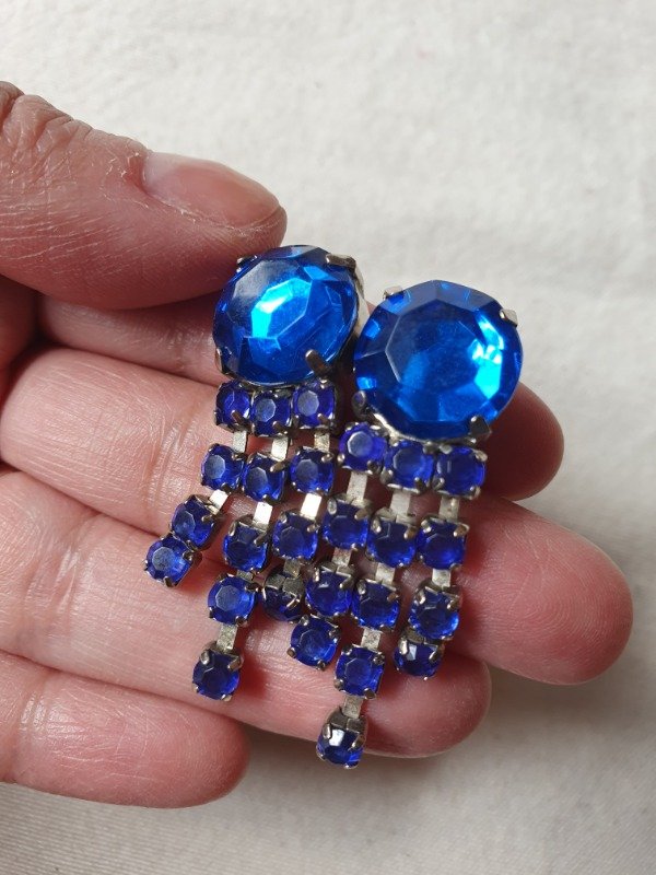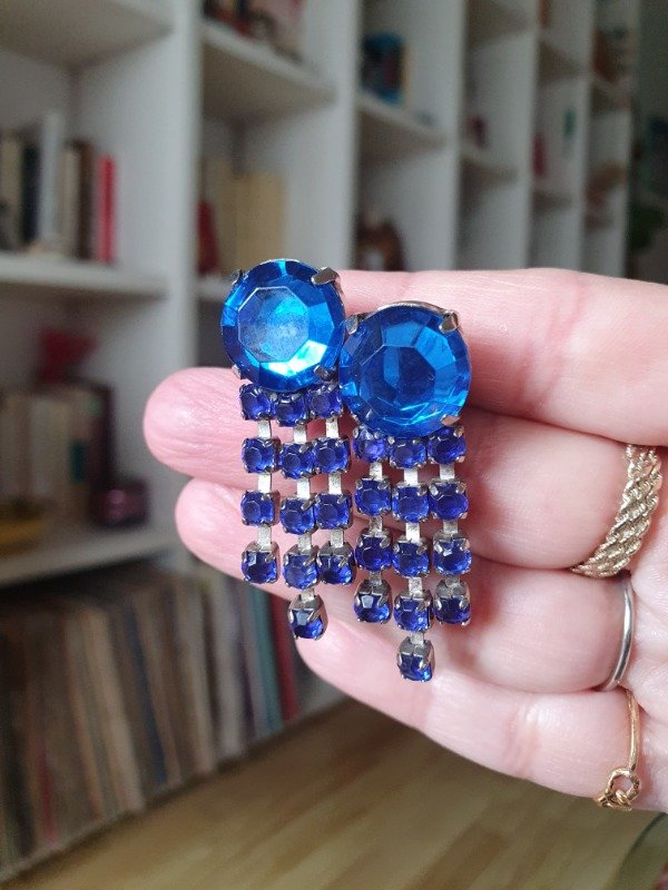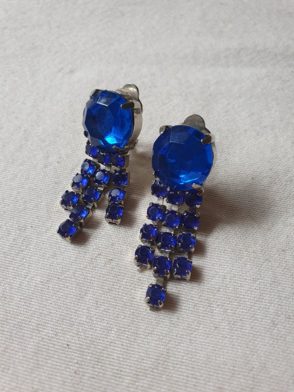 Aros Clips 80s Lluvia de Brillos Azul