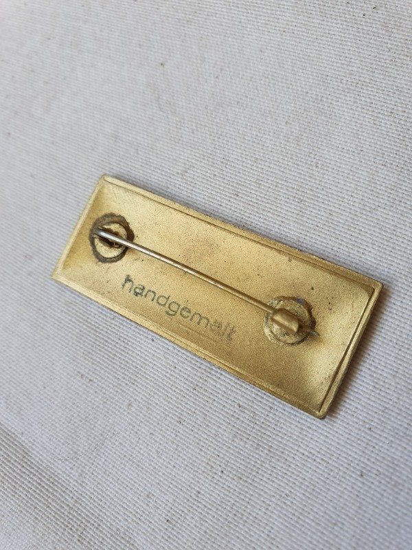 Tiene en el dorso la leyenda "handgemalt" ~ pintado a mano en alemán