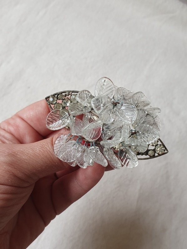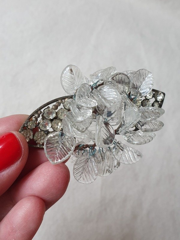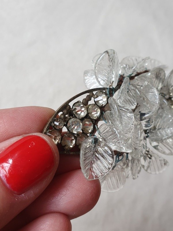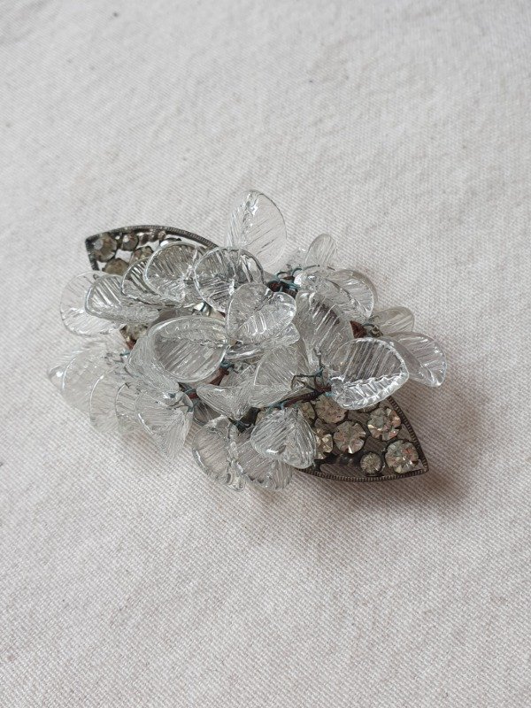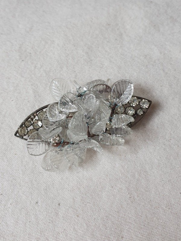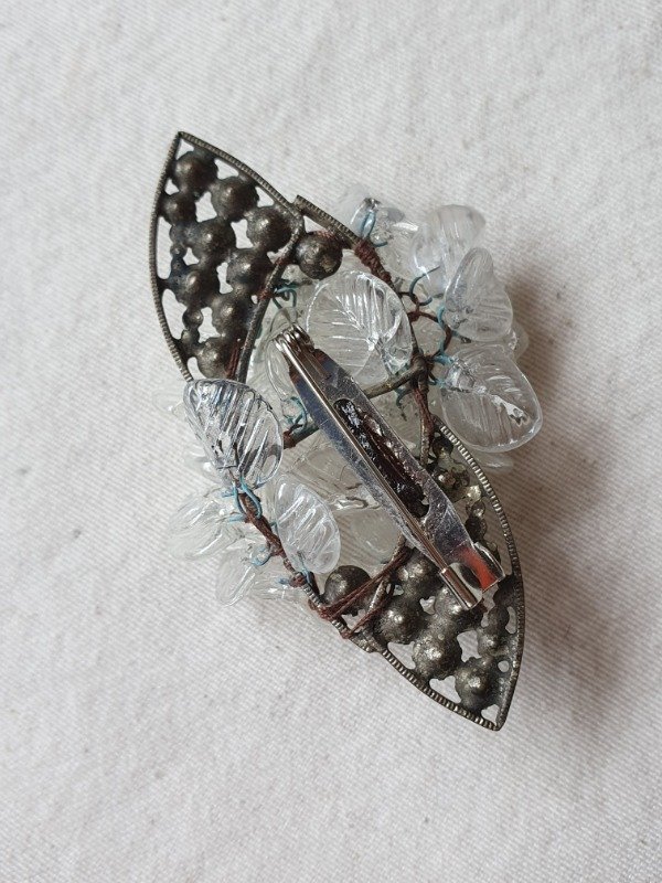 Broche Antique Ovalado Brillos y Hojitas de Vidrio