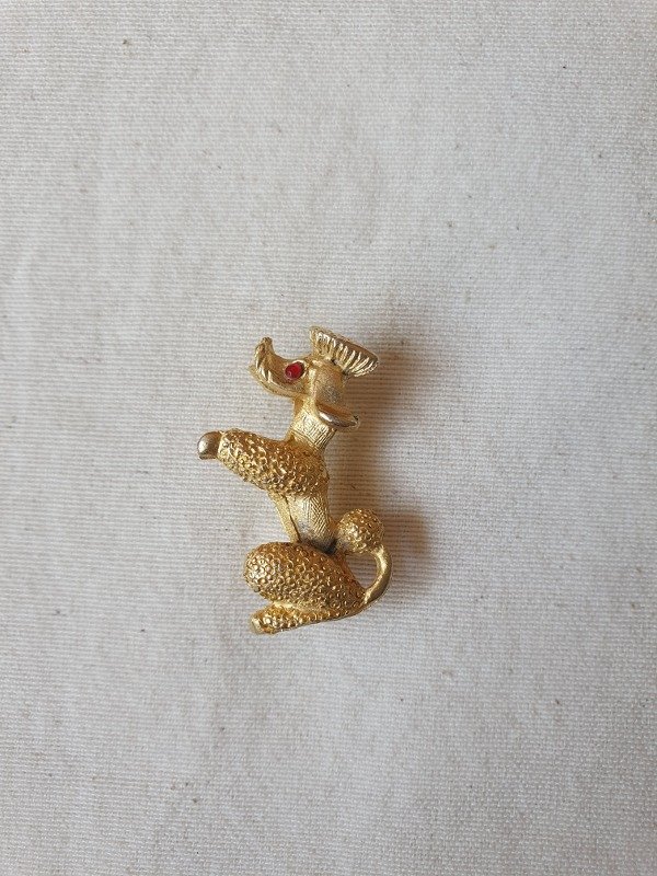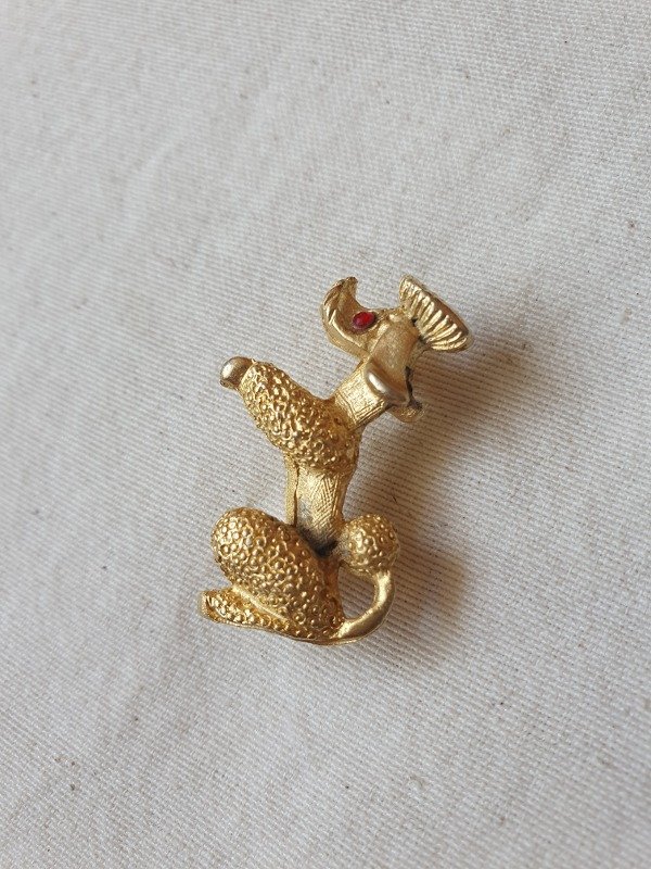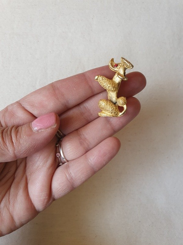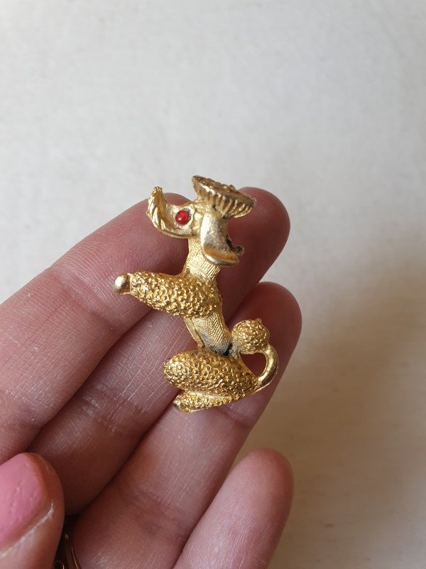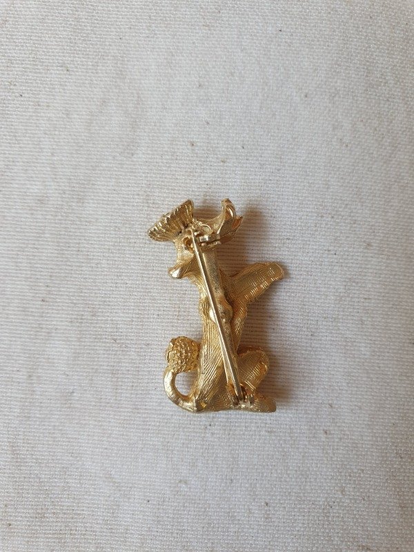 Brochecito dorado de los 50s~70s, de metal dorado con trabita de seguridad. Mide aproximadamente 3,5 cm.