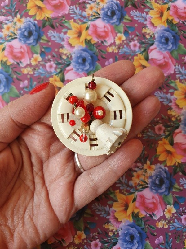 En el dorso tiene un broche a presión con pinches para sujetarlo a las prendas. También se lo puede usar como colgante si le pasan una cadena o collarcito finito por el clip y les aseguro que les va a quedar un collar divino.
