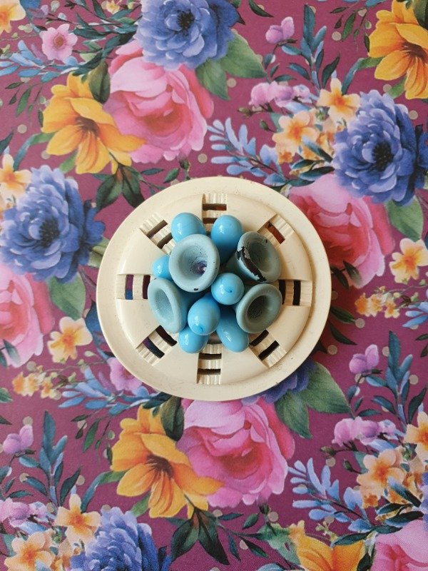 Cada uno es único, con sus pequeños bouquets de florcitas de vidrio moldeado, a la flama, hojitas y piedritas.