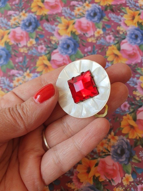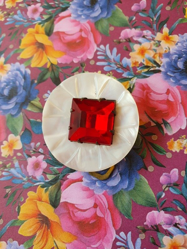 Clip de Vestido 30s Nácar y Cristal Rojo #6