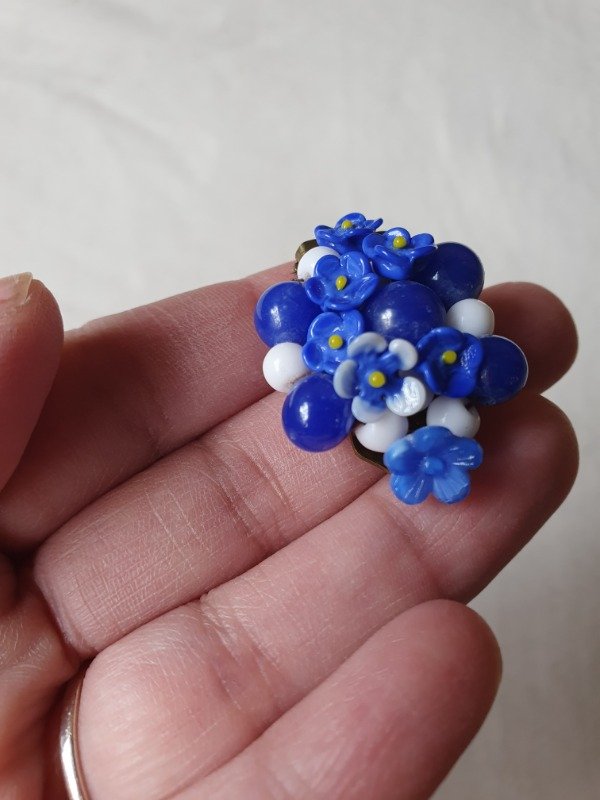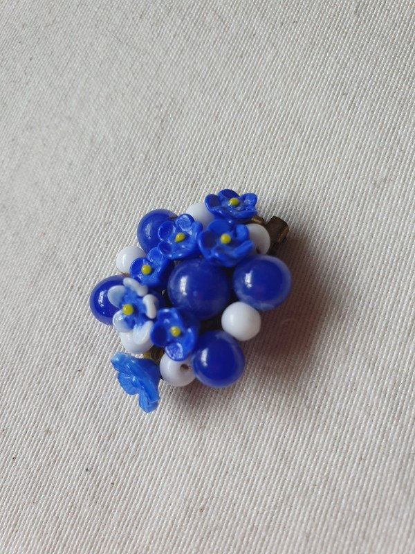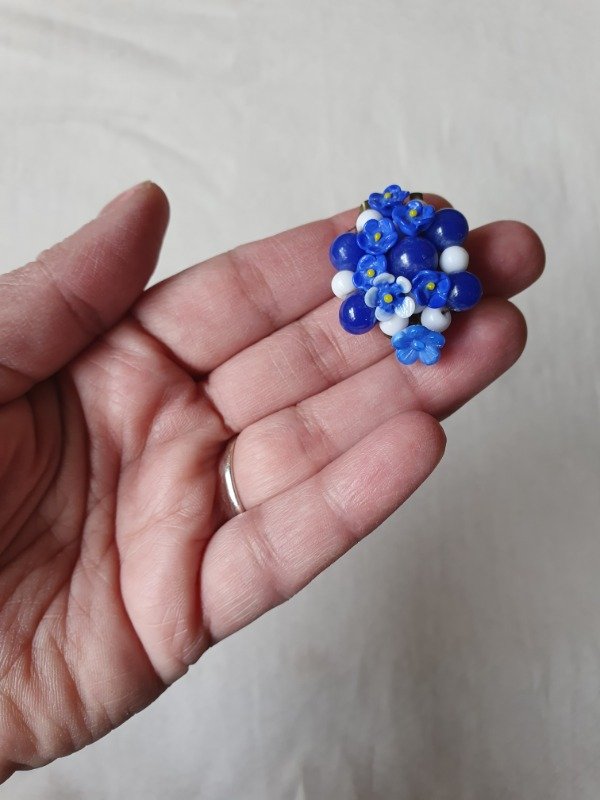 Clip de Vestido Bouquet de Florcitas Vidrio Moldeado Azul