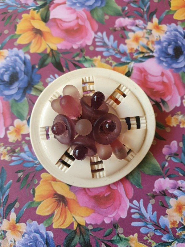Cada uno es único, con sus pequeños bouquets de florcitas de vidrio moldeado, a la flama, hojitas y piedritas.