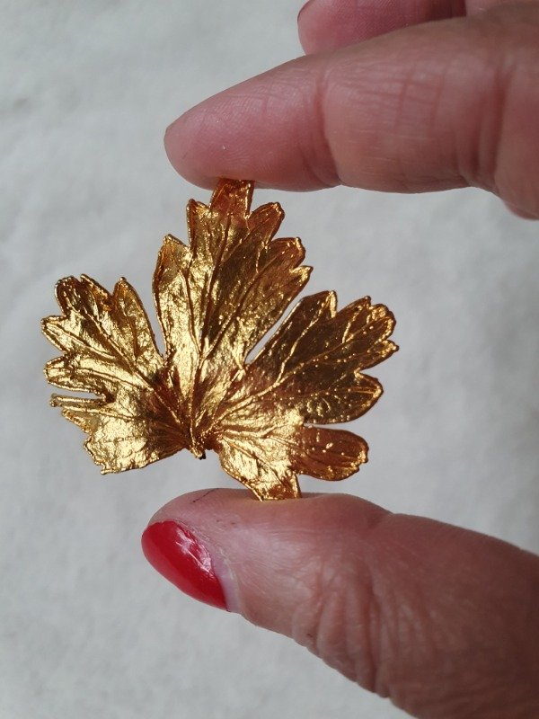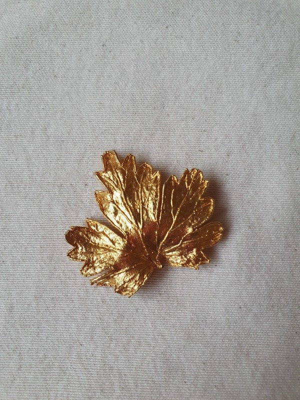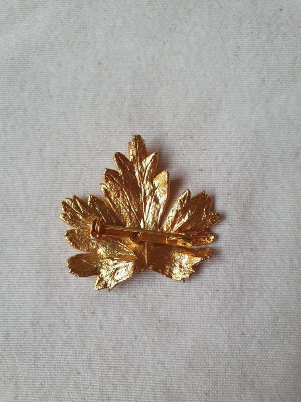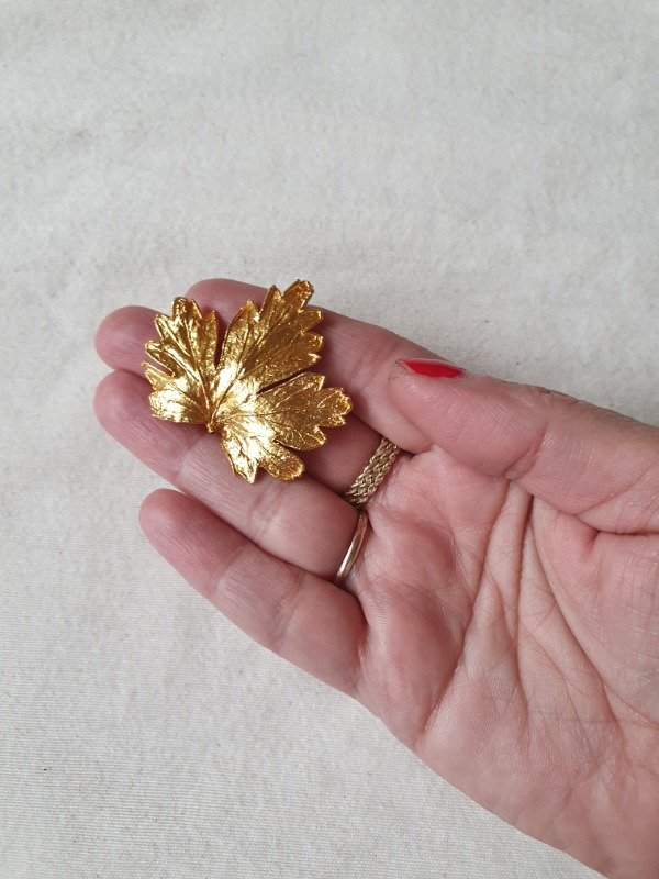Prendedor hojita de arce dorada. Mide 4 cm.