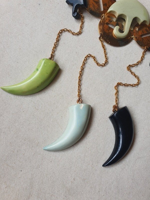 Collar de los 40s con colgantes de baquelita coloreada.