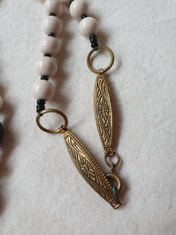 Además, cerca del broche tiene dos plaquetas de bronce labradas, una terminación muy original y poco vista.