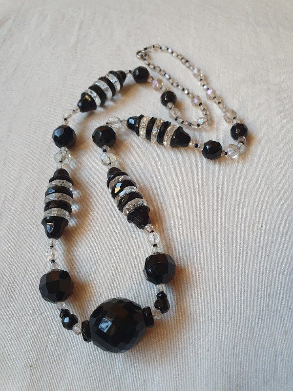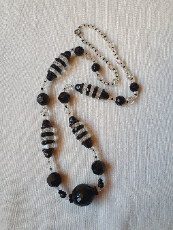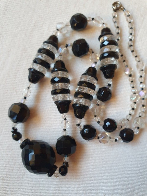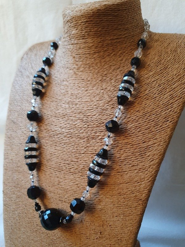 Collar Art Déco de los años 30s completamente realizado en cristales y cristal de roca iridiscente.