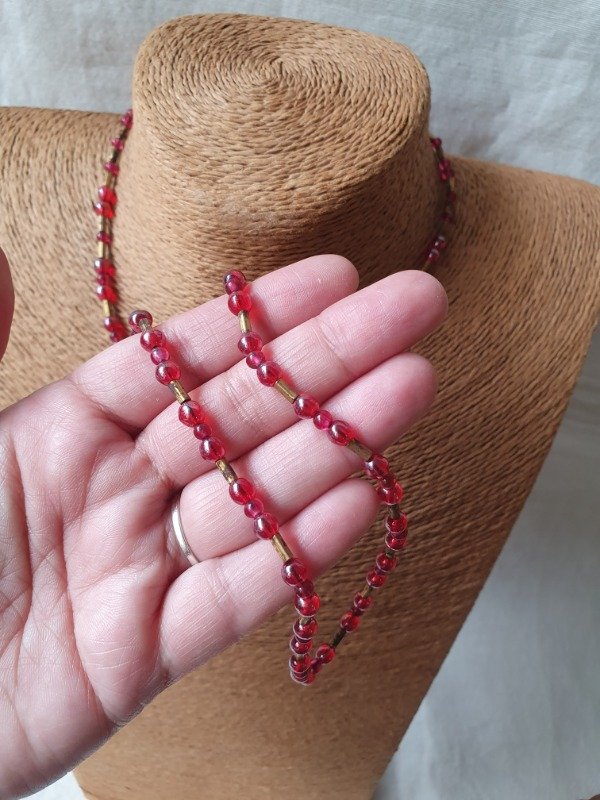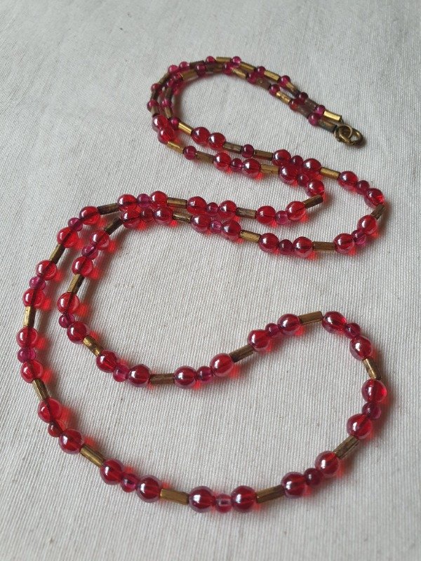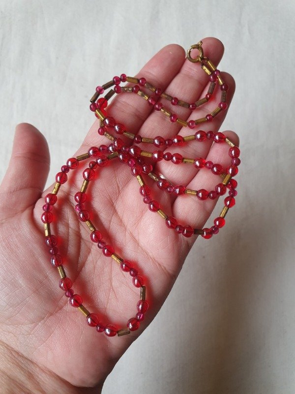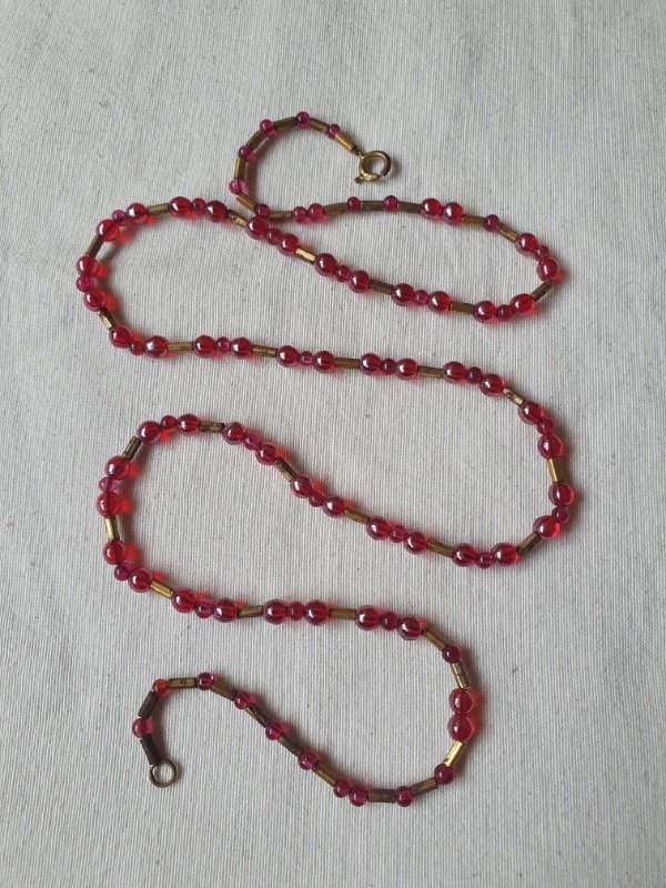 Collarcito 30s Perlitas de Cristal Iridiscentes Magenta