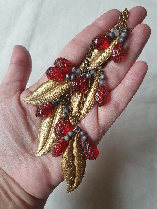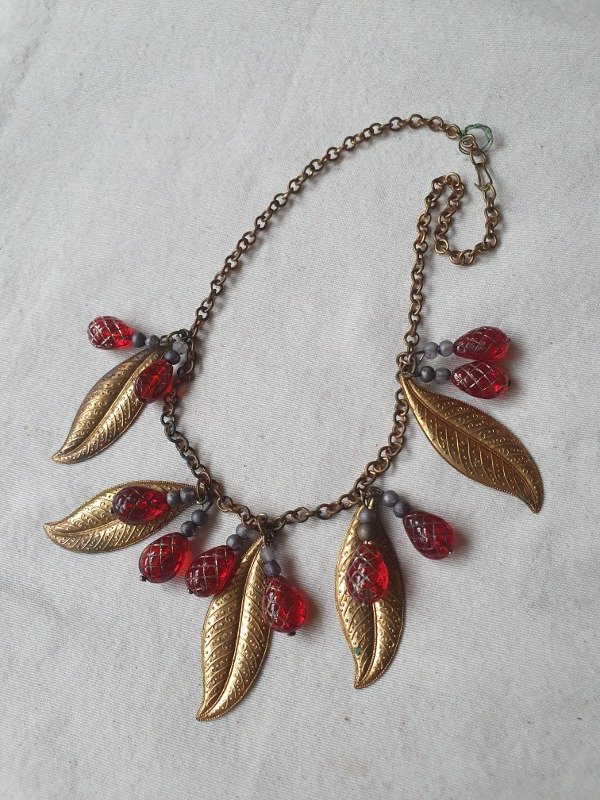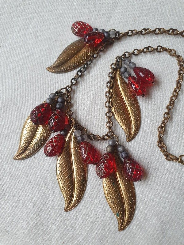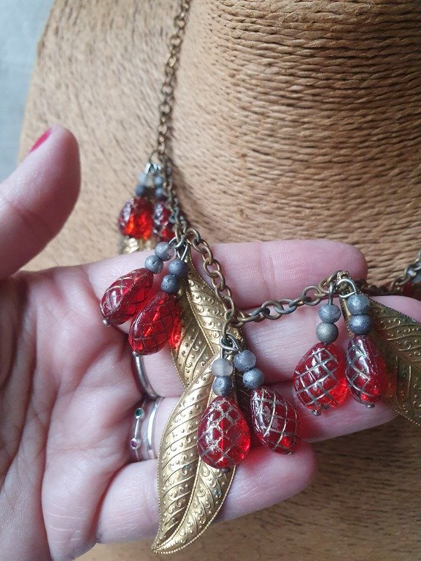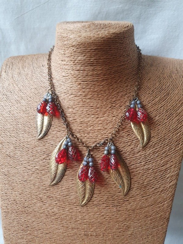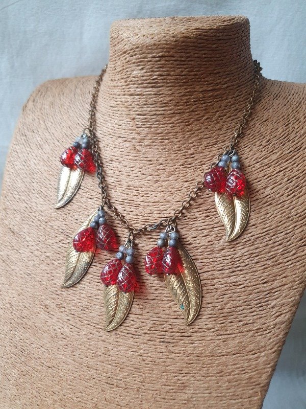 Collarcito Fruit Salad Frambuesitas de Cristal con Hojitas de Oro Ruso