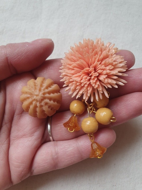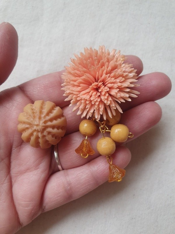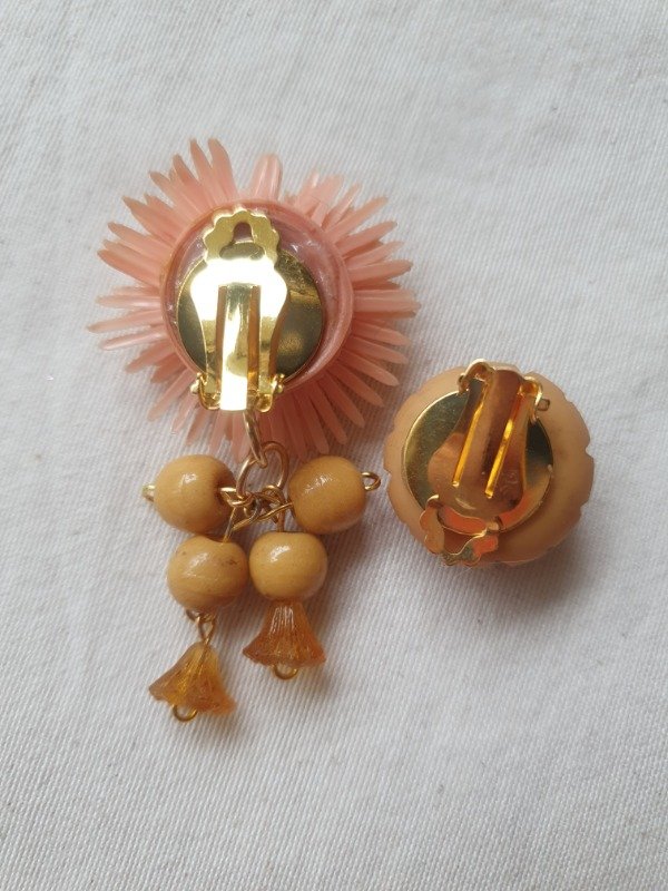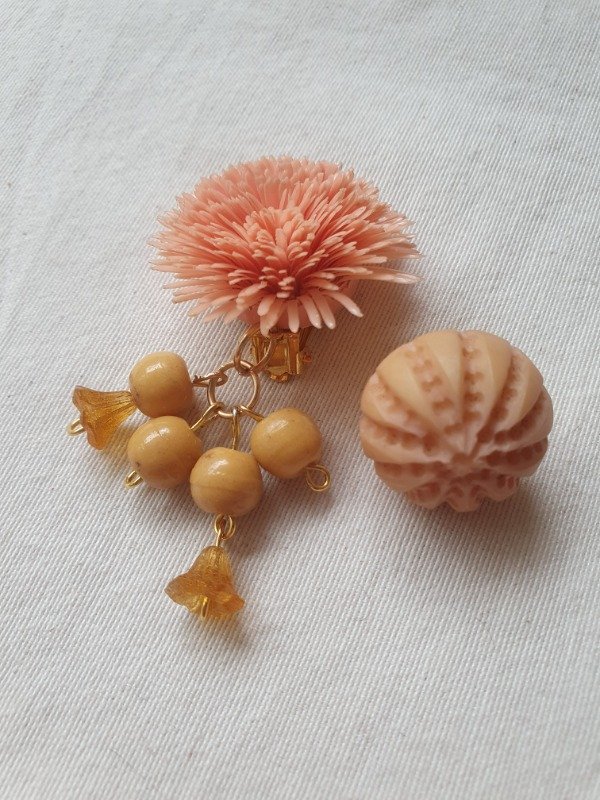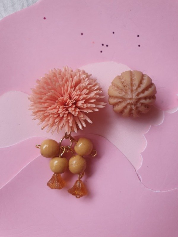 Aros clips asimétricos realizados con materiales vintage de los 40s y 60s
