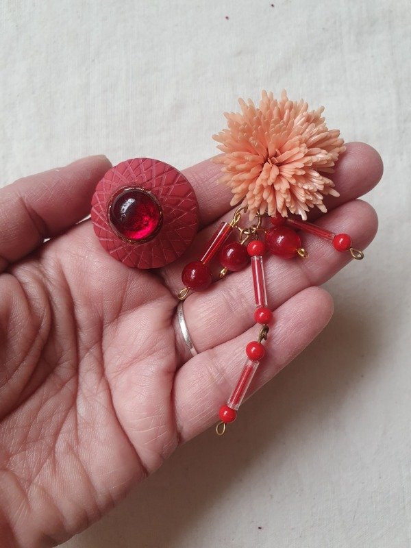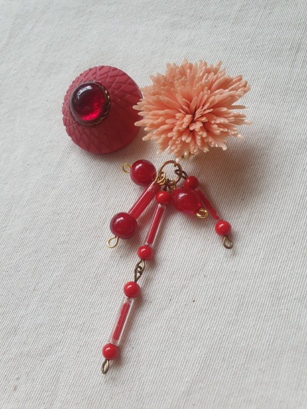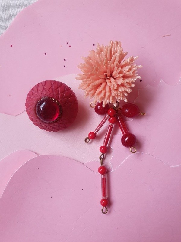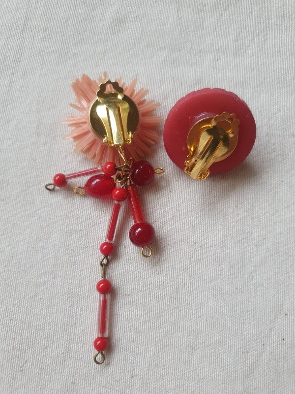 Aros clips asimétricos realizados con materiales vintage de los 40s y 60s