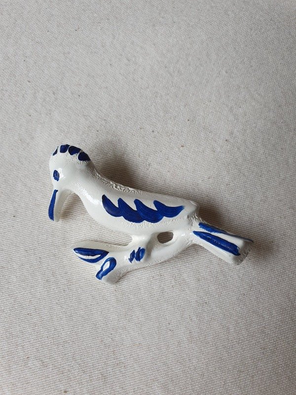 Pieza realizada a mano con materiales antiguos recuperados, esmaltados y pintados a mano por Silvina de de @lirio.vintage. Inspirada en la estética mediterránea en blanco y azul, como la arquitectura de las costas de Grecia, las ciudades azules de Turquía, los posters de los 60s de la Côte D'Azur y las aguas de la famosa gruta de Capri. Los motivos son las shells, los caracoles que encontramos a la orilla del mar, las flores, gaviotas y unos rostros relajados acariciados por la brisa marina.