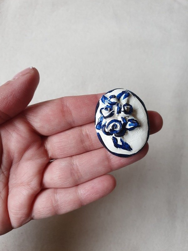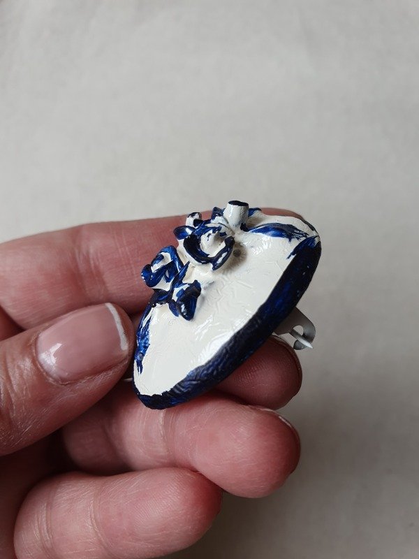 Pieza realizada a mano con materiales antiguos recuperados, esmaltados y pintados a mano por Silvina de de @lirio.vintage. Inspirada en la estética mediterránea en blanco y azul, como la arquitectura de las costas de Grecia, las ciudades azules de Turquía, los posters de los 60s de la Côte D'Azur y las aguas de la famosa gruta de Capri. Los motivos son las shells, los caracoles que encontramos a la orilla del mar, las flores, gaviotas y unos rostros relajados acariciados por la brisa marina.