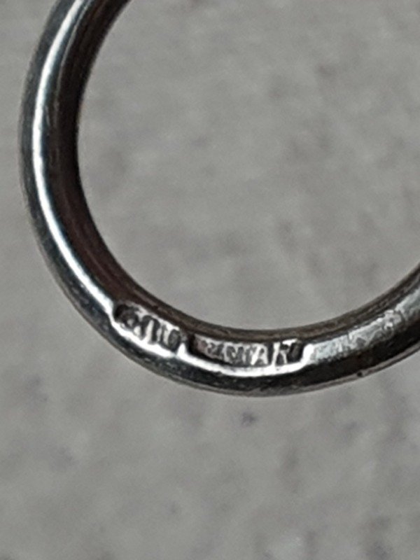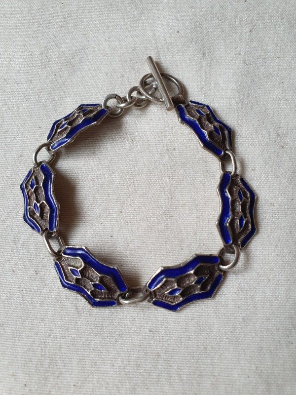 Brazalete modernista de plata 800, italiano, esmaltado en azul y sellado AR (argento) 800 (calidad de la plata) 37 Alberto Galgani, Arezzo, 1961.